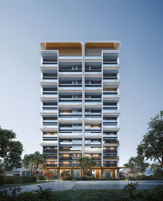 此外,高层建筑还搭配了135㎡户型,一样的超流体白金立面,一样的一梯一户,一样的四开间南向,宽约10+米的观景阳台,生活尺度一样奢阔有余。