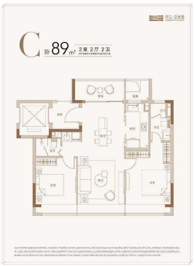 建面约89㎡舒阔2房户型