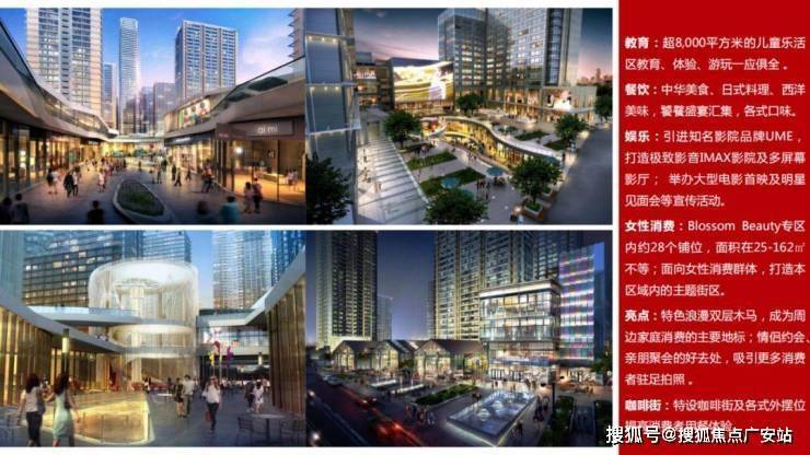 项目集逾14万方高端住宅、约22万方旗舰商场、2幢精品酒店及4幢办公写字楼于一体,建成地标性的高尚消费圈。同时设有名店区及多个表演场地,构建购物消闲圈、时尚优活圈、经济核心圈、创意文化艺术圈四大尊尚领域。