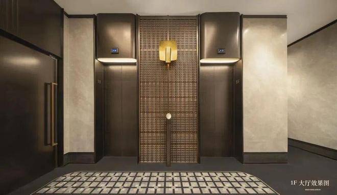 约60米全画幅门庭豁然展开,纳千年风雅于一境。两株超百岁树龄的罗汉松,跨越千里而来,静守世家门楣。金属格栅与天然奢石交织,光影流动间,勾勒出一幅现代东方的诗意长卷——天造一半,人造一半。门庭之上,良渚玉琮纹样化作迎宾重檐,西湖水韵幻为龙鳞叠水。东方符号融入现代构造,诠释世家气度与文化底蕴。