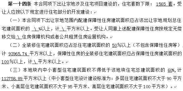 根据项目建设需求:地块规划住宅下限1565套,地块要求一半全装修,中小户型比例为60%以上,装修集采标准为2500元/平。