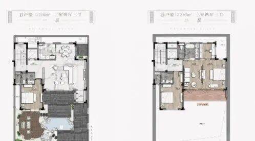 作为精致合院的进阶版,春江御园建面约210㎡舒居合院,以约12m的舒朗南向开间,升级了人居的体验感,而更集中的庭院空间,也让叠山理水、安亭置榭更方便。