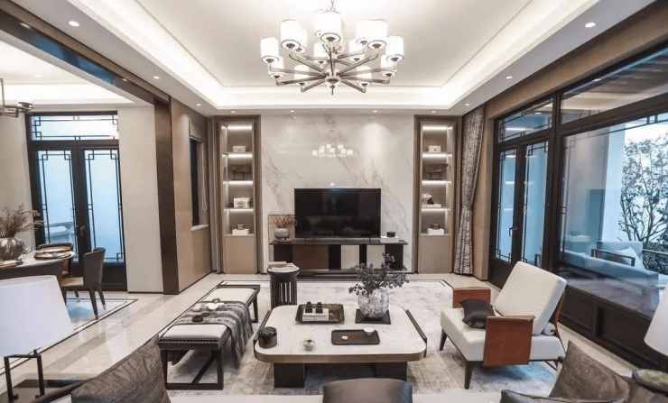 开门见院的朗阔格局、大尺度的落地玻璃门、约3.6m的舒适层高,让会客空间的视野可以尽情延展,满足了城峯人物对人居必须兼顾实用性、功能性、舒适性原则的基本要求,也为家人提供了更好的赏景角度。