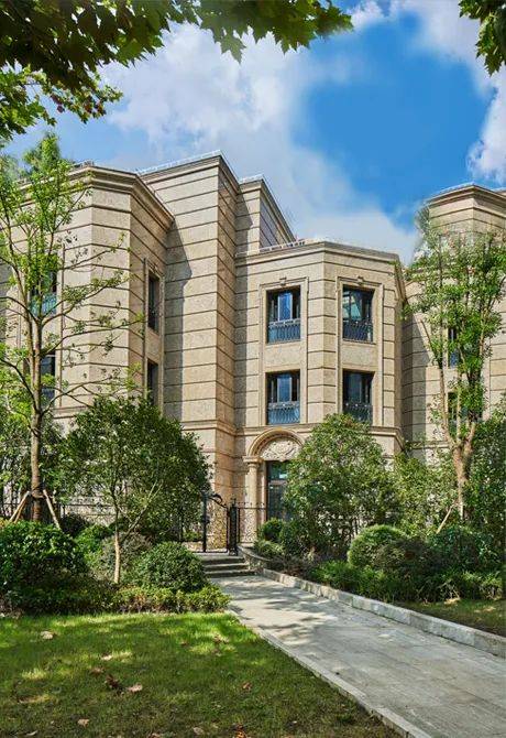 整体风格依然以海派为主的海派公馆,有别于一般的类别墅产品,项目从精致的法式石材外立面,采用天然石材,在窗户以及门头处,采用精致的石刻雕花,使整个别墅显得更加精致。