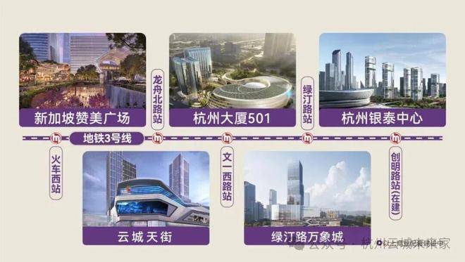✦新加坡赞美广场(预计2028年建成):3号线火车西站,直距约600米,新加坡国际知名商业IP,将以超10万方立体空间,规划接入近300家品牌店铺,打造杭州乃至长三角区域内的旗舰级高端潮流商场、时尚生活中心。(数据来源:《云门中心》公众号)