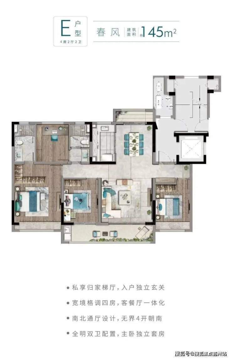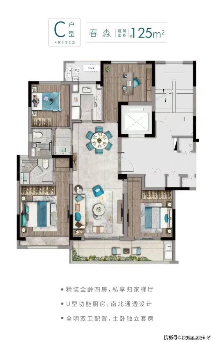 景观:南北双归家大堂,景观轴线贯穿,人车分流设计,地下停车场直通入户