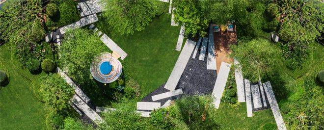 聆星客厅前方种植了松界王者——日本黑松,约4000万+的顶豪融创外滩壹号院的社区内,也有一颗同款;