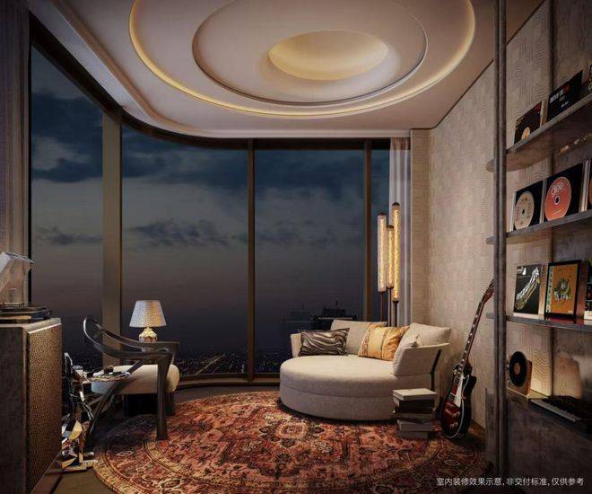 一梯一户私密格局、约3米进深玄关的归家仪式,搭配近11米景观落地窗与超60㎡滨江天际会客厅,构成IMAX环幕生活剧场,满足名流沙龙、家族聚会等多重仪式感场景。双南向套房配置与约5.1米宽西南向观景阳台,让功能与尺度实现巅峰平衡。