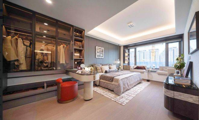 户型设计上,兼顾了尊崇感与实用性。约18.5米的超级面宽,近乎奢侈地实现了“5.5开间朝南”。“南向双套房+双明卫”的顶级配置,一梯一户的独立电梯厅,超70㎡的LDKB一体化社交方厅,约4.8米开间的中西双厨……居住体验媲美主城千万元级大平层。放眼全杭州,这一户型都称得上高层住宅的“大户型之神”。