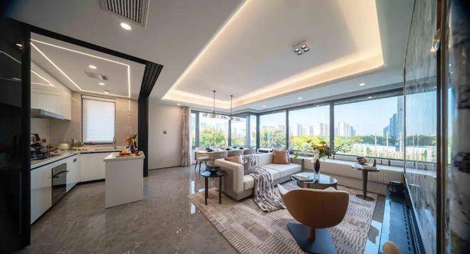 户型设计更是成功出圈,除了爆款大户型,每个户型都可圈可点。例如位于西区东边套的建面约119㎡四房户型,设计了L型边厅,拥有270度的环幕视野。建面约98㎡户型,拥有南向约6.4米双开间阳台,还在U型厨房对面设置了S墙,将空间利用率最大化。