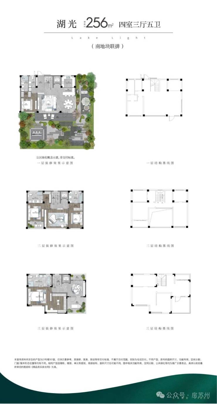 (1)联排:打造约246m²、约256m²(边户)、约280m²三个户型面积,以迭代的联排作品,致敬真别墅的回归
