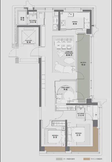 中间户想表达的是,以家人为中心,每个空间给家人极致照顾。
