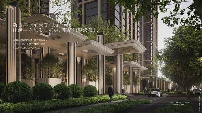第一重:旗舰门厅与十二帆影:业主先穿过寓意“上海之帆”的旗舰门厅,再路过12座8米高的“帆影门廊”,建筑语汇先将滨江的航海文化融入归家礼序。