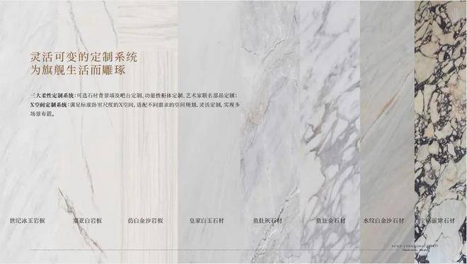 石材背景墙、岛台及柜体凹龛台面提供世纪冰玉岩板、塞亚白岩板、皇家白玉石材等多款珍稀石材可选。