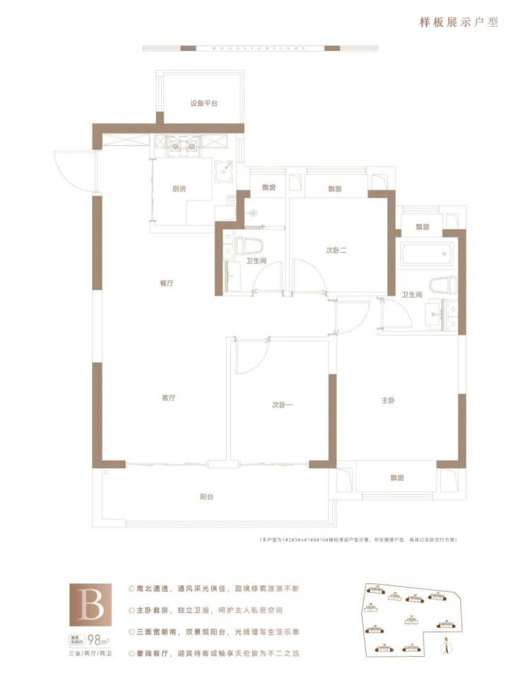 另外,项目户型多为三开间朝南,98㎡和118㎡还整体采用了南向双阳台设计,房间通透明亮,利用率高。再加上阳台L型窗设计、同层排水设计……每一处细节都经过了认真考量,带来幸福满满的居家生活。