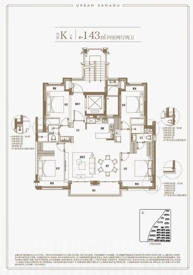 全套户型图如下,户型为建面约92-105-128-136-143㎡3-4房。叠墅139-143㎡!