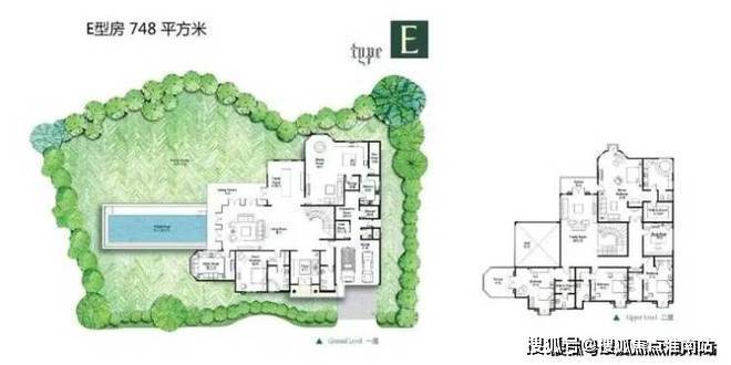 建筑面积:700-850㎡(地上两层+地下两层),使用面积超1000㎡,户均花园占地约2亩。34