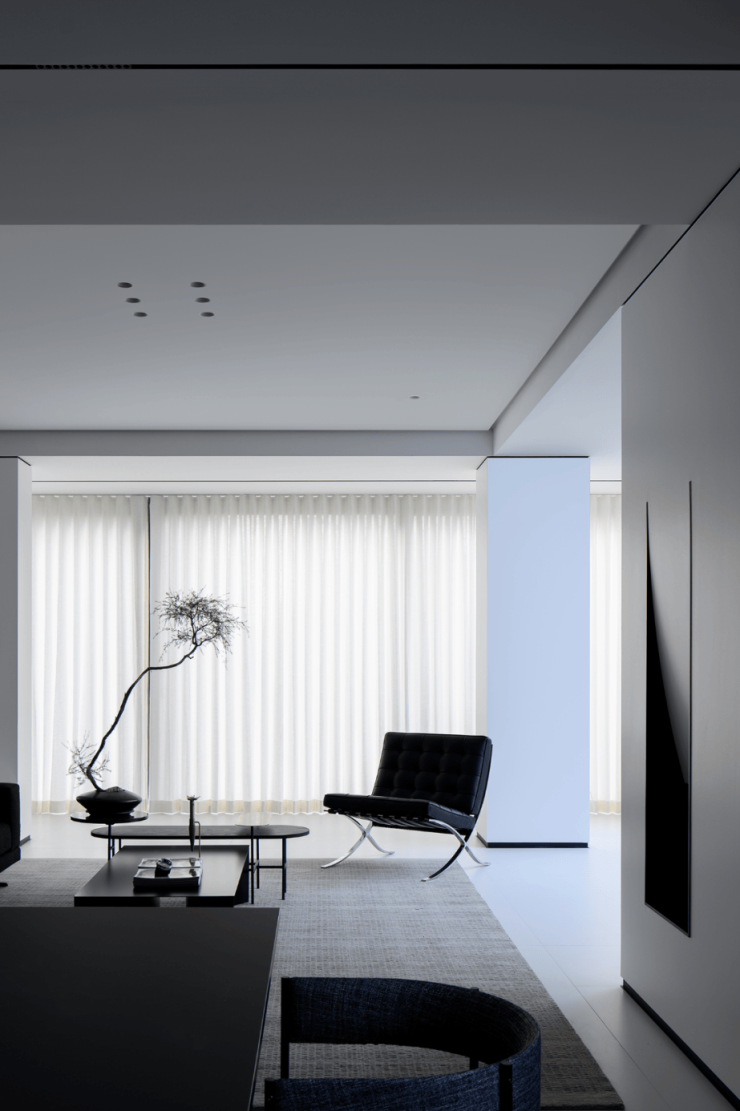 黑色系家具位于白色系的室内,形成了唯美的对照,同时也进一步丰富了空间内在,在知性之中,更显从容之美。