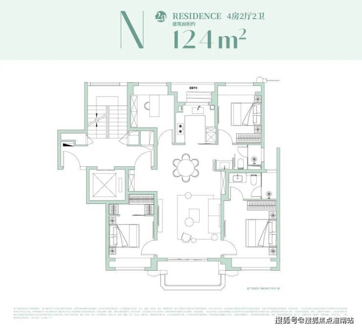约153㎡户型设计:极致观景,西瞰江景,东瞰园景!4房功能齐备!