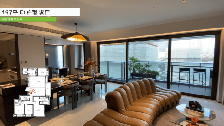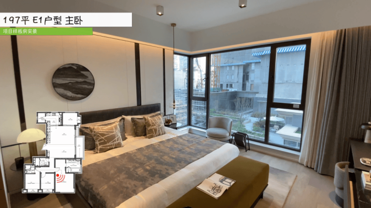 而E1是4房的边套户型,7米多的超大面宽阳台,以及三个朝南的主卧,我实地拍的样板房时具体讲解。