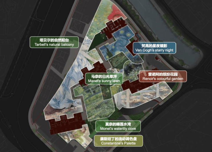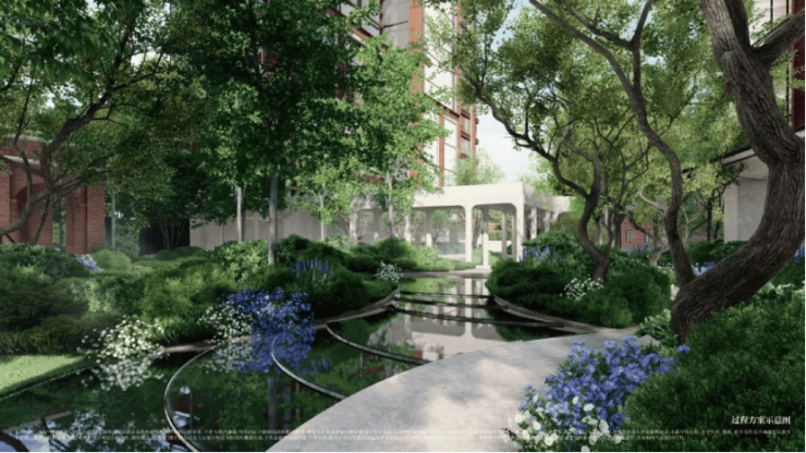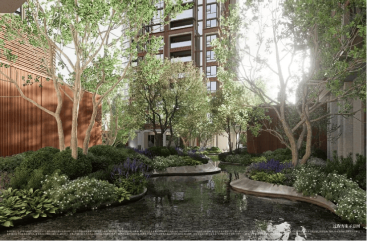 印象派秘境花园:约3000㎡围合式中央花园,被打造成“流动的艺术展”——草坪似马奈笔下的日光,繁花复刻雷诺阿花园,水边光影映着莫奈睡莲与梵高星空,回家就像逛美术馆。