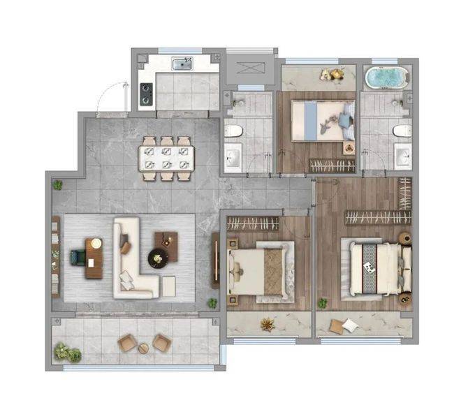 5,本批次房源的房屋套型为3房2厅2卫、4房2厅2卫: