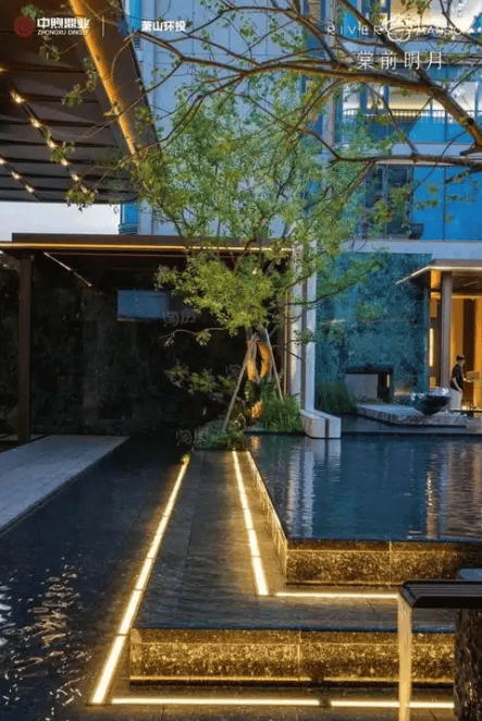 外立面采用铝板+曲面玻璃的“超流体”设计,配备双奢石门头、70米滨河公园及热带景观泳池3