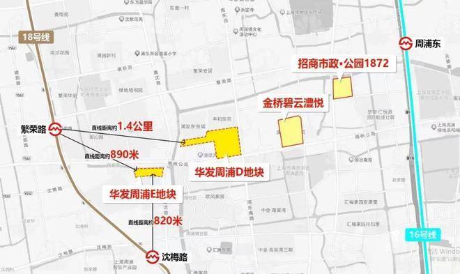 交通方面:E地块距离18号线沈梅路站直线距离约820米、繁荣路站约890米。