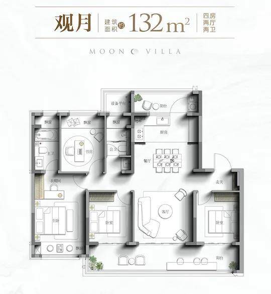 改善洋房建面约132㎡,4房2卫,舒适度拉满,是吴中核芯入门级改善的优质选择。