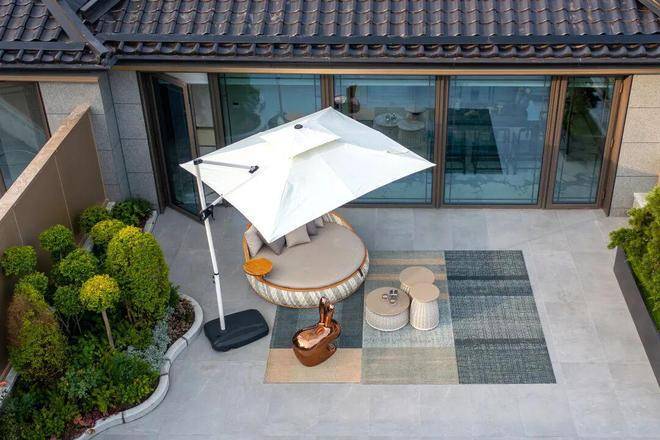 在底层设计处理上,结合阳台外的挑檐之下自然形成灰空间,通过与落地窗、围墙的围合,形成私享的空间;约8.6米的南向面宽,加上L型的超大采光面,即便是首层的各个角落,都能涌入大量的阳光。
