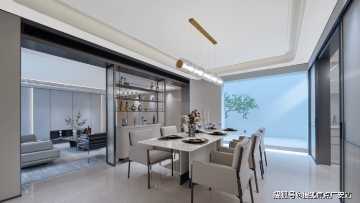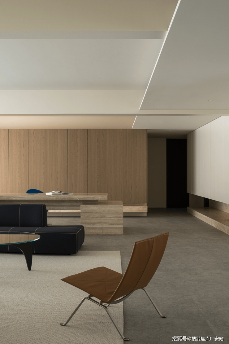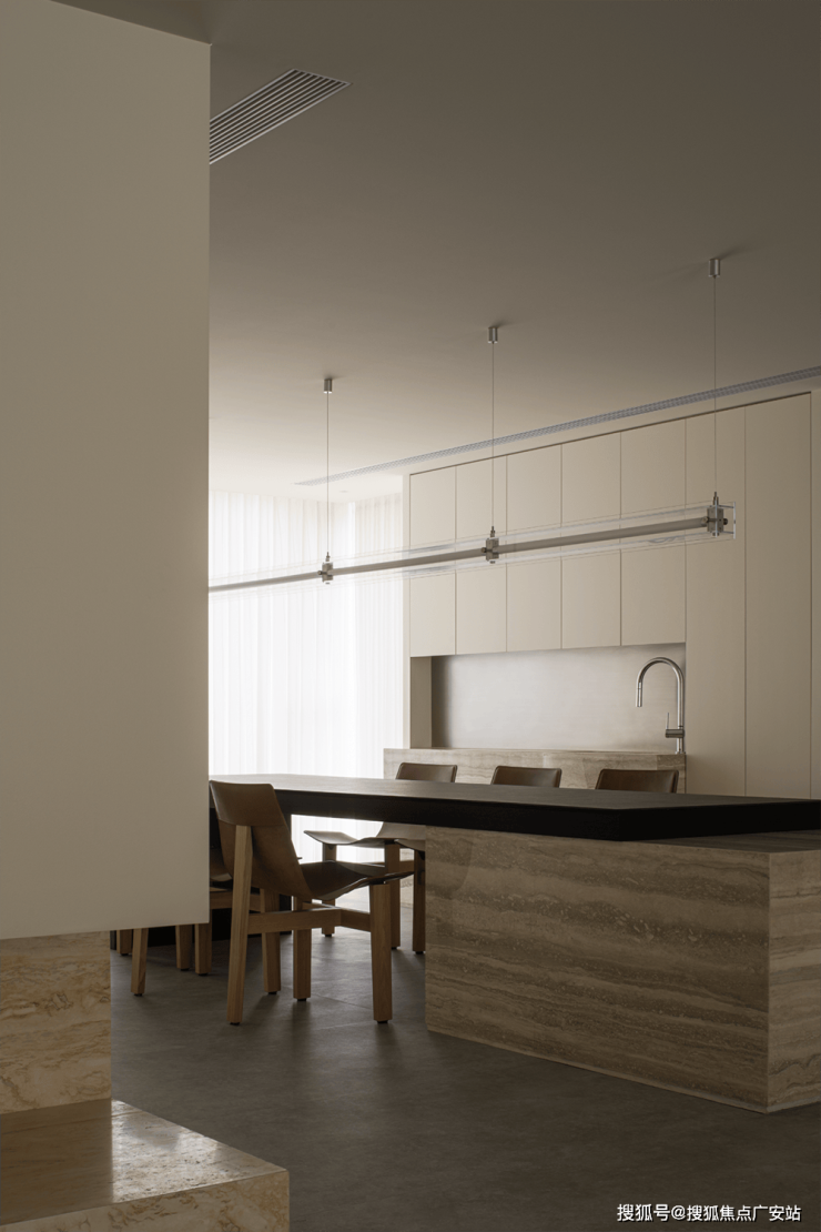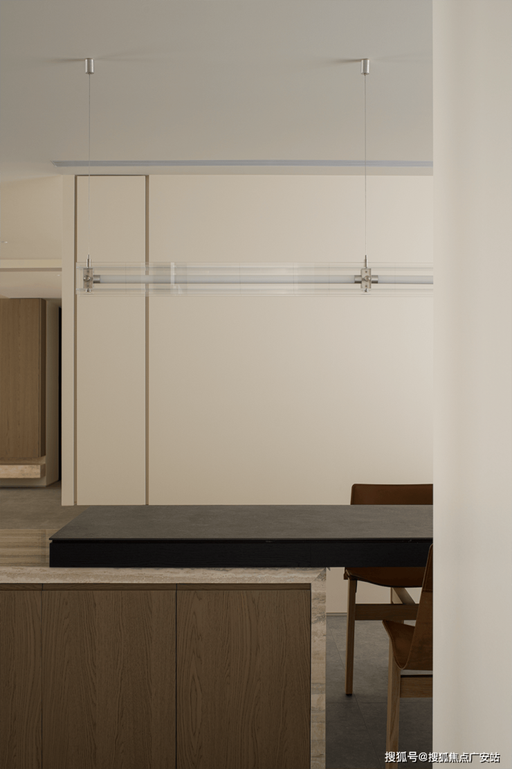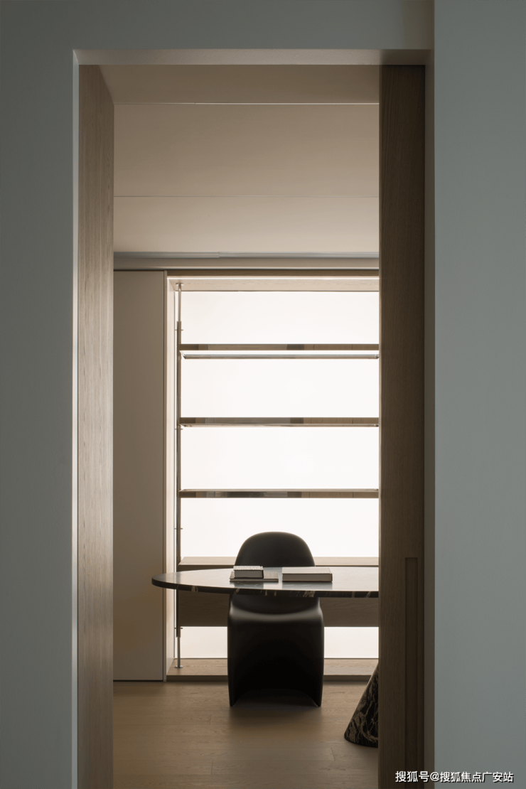光的造型随着日落日出,为居家带来诗意。光线进入室内,视觉感受被横向拉长,更加自由与宁静。