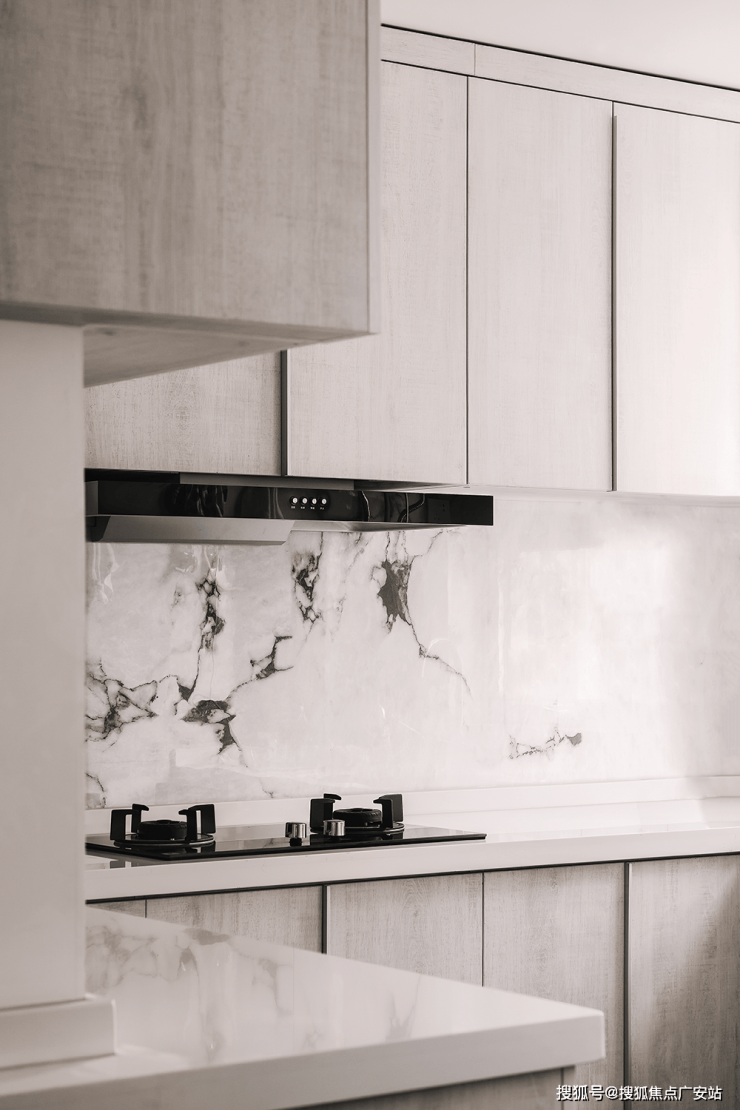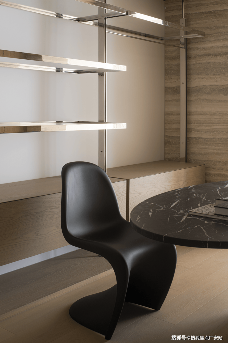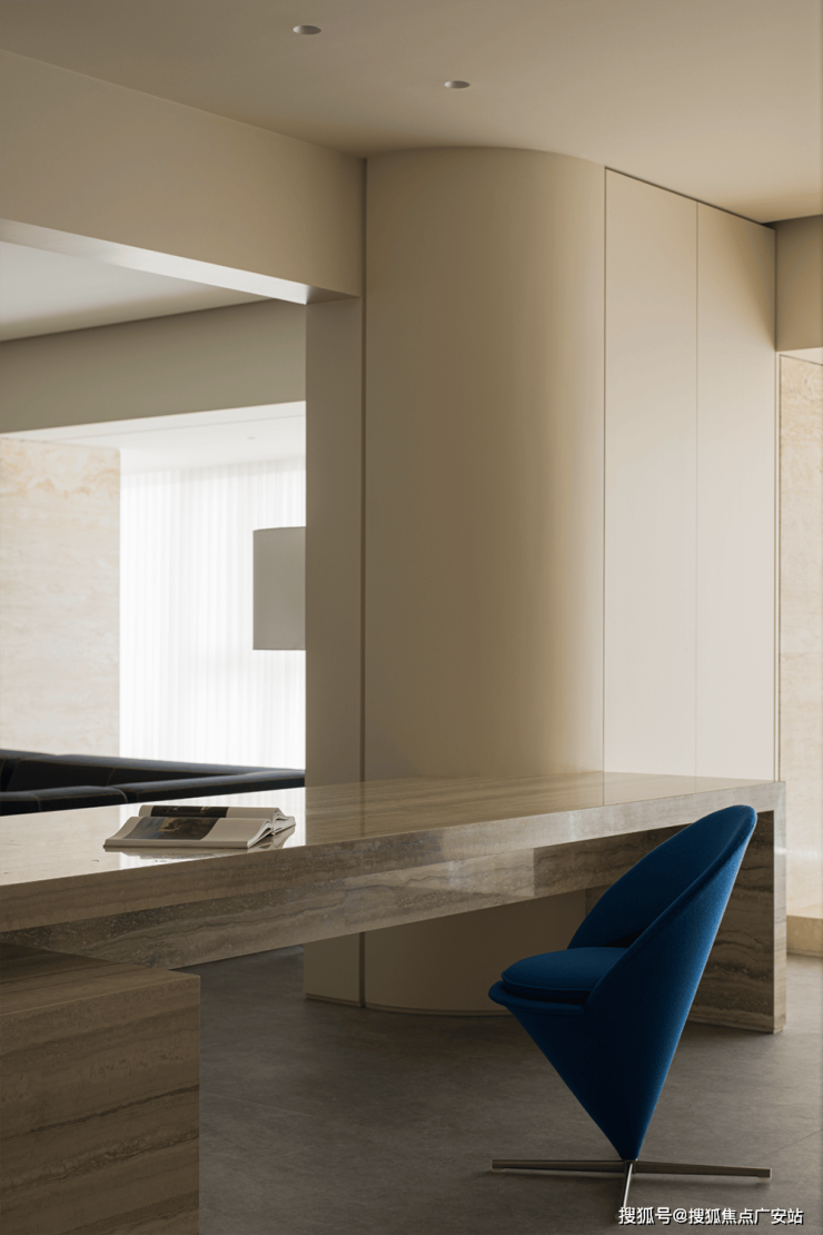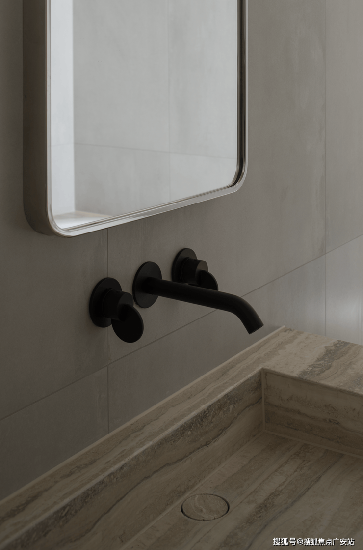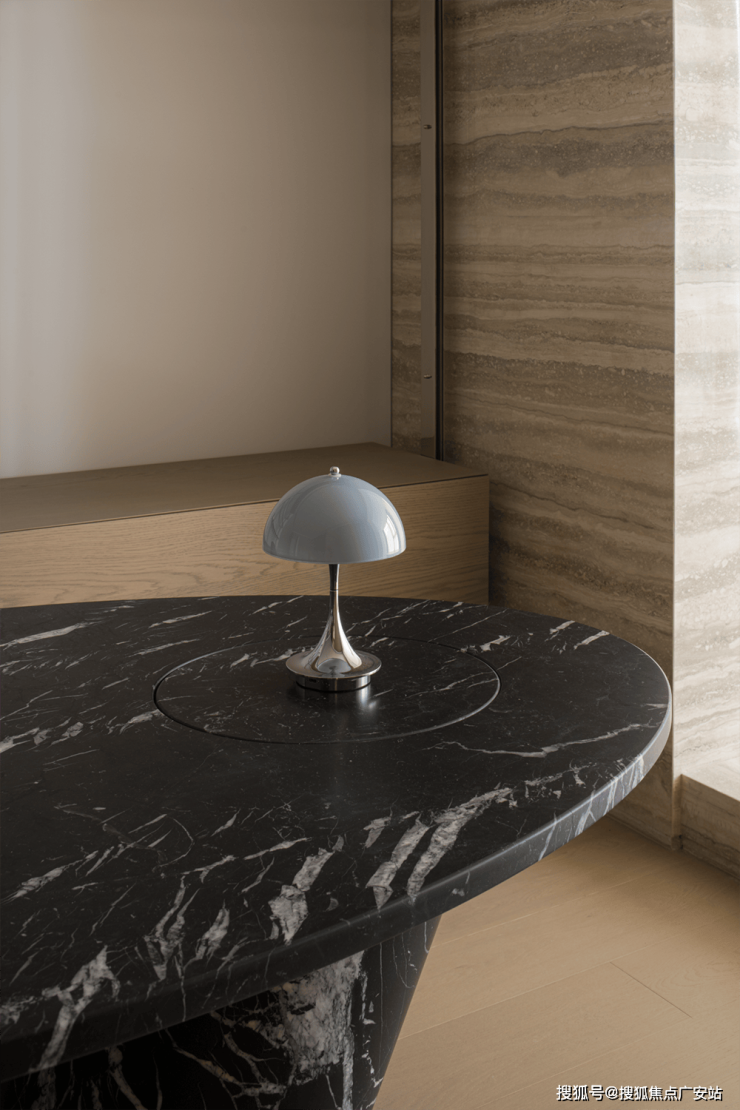 不同材质的组合,界定了不同的功用与空间,形成了视觉的落脚点。巧妙运用大理石的质地、光泽与颜色,自然展现了不同石材的肌理关系。