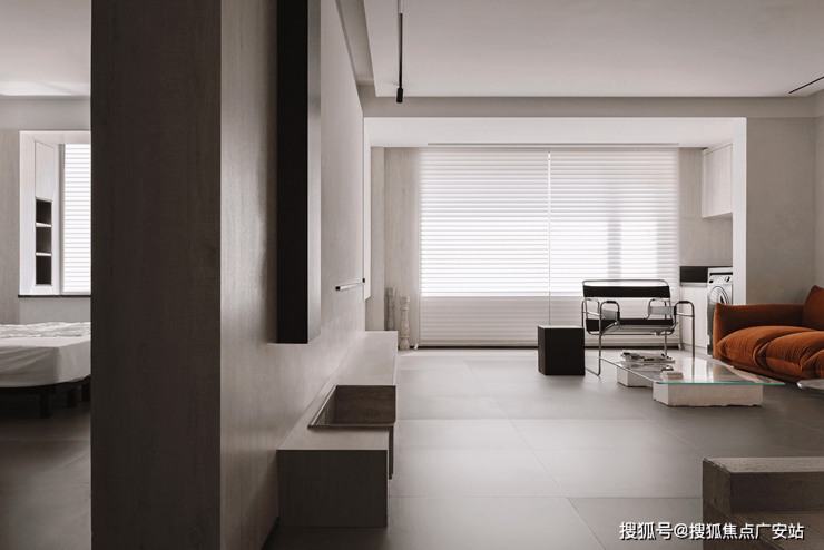 探索白的边际,完整的素色墙面关系将空间边界消隐,又以不同材质的碰撞提升空间品质,最后用卷帘均衡空间的光感,诉说空间故事。