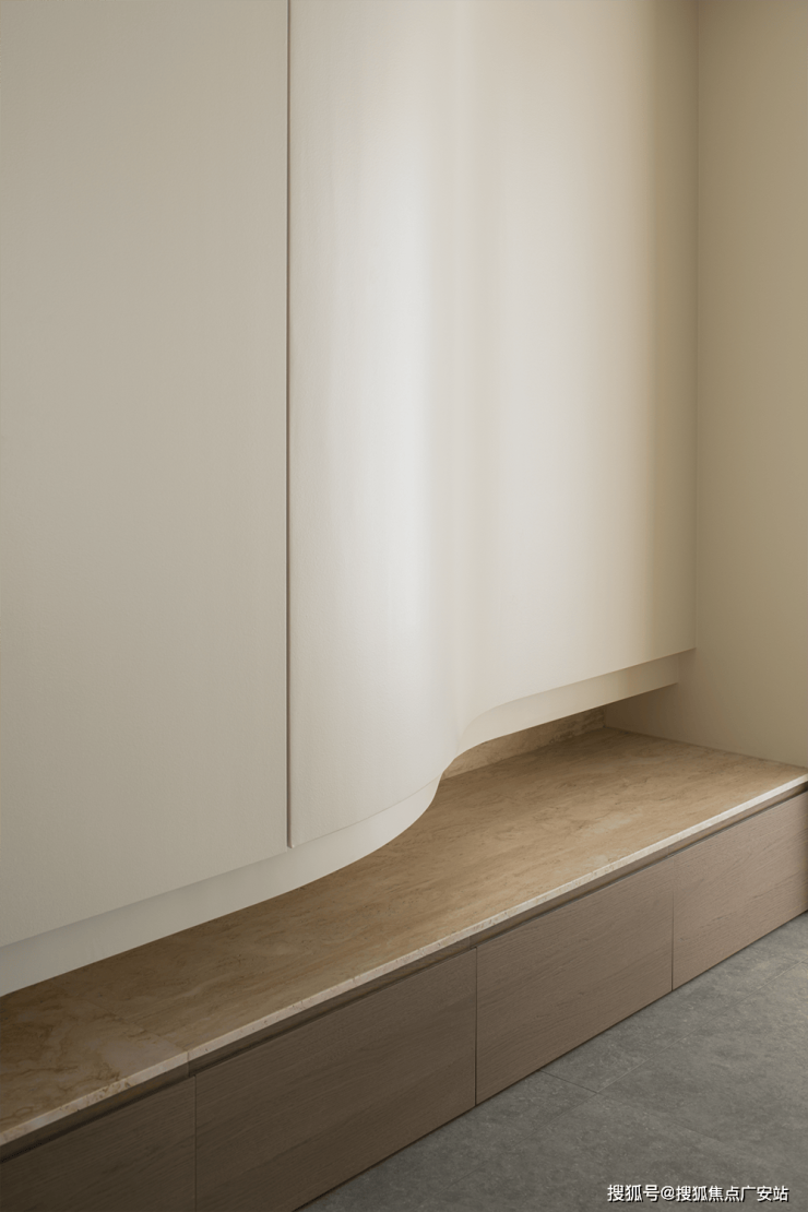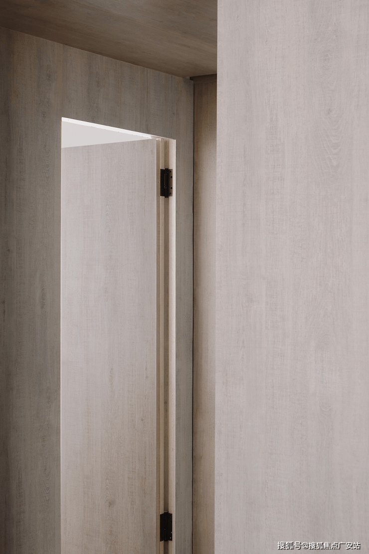 通过重塑质朴的日常,留有呼吸可对话的空间。墙柜结合的形式,既保证了日常生活的收纳需求,也使整体空间更为和谐统一。