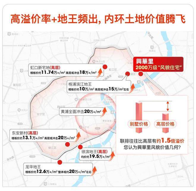 近期土地市场大热,且高溢价丝毫没有停下的态势。前有绿城徐滨地王开出19.5万/㎡,后有龙华地王,整盘预期或近20万/㎡,紧接着虹口内环又诞生地王,有望冲击18万+/㎡,最近五批次土拍,杨浦内环也诞生地王,高层有望冲击15万/㎡。