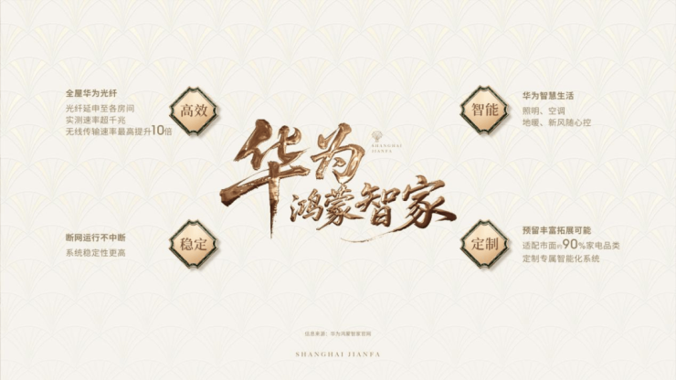 奢配大金中央空调+地暖两联供、霍尼韦尔全热交换新风、博世三件套、日本骊住多功能水槽等国际大牌精装,集成华为全屋智能系统、全屋华为FTTR光纤WIFI,一键联动归家、离家模式,智控空调、新风、地暖等。