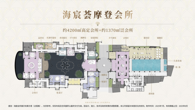 为延伸居住功能,建发海宸规划约4200㎡高定摩登会所与约1370㎡架空层泛会所,远超市面上豪宅会所的尺度,且自持运营,服务品质稳定有保障。