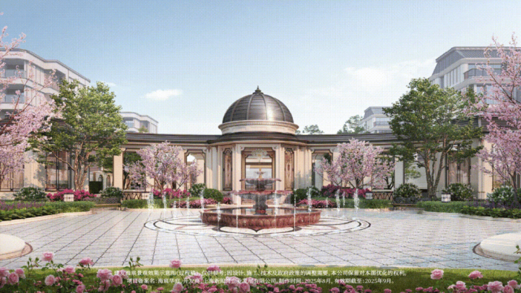 海派臻园以“沪城八景+五大名园”为蓝本,打造约200米繁花长廊为主轴,形成“两轴双环八五园”的立体景观系统。同时通过约1.5公里水岸公园,实现从私家园林到城市生态的无缝衔接。