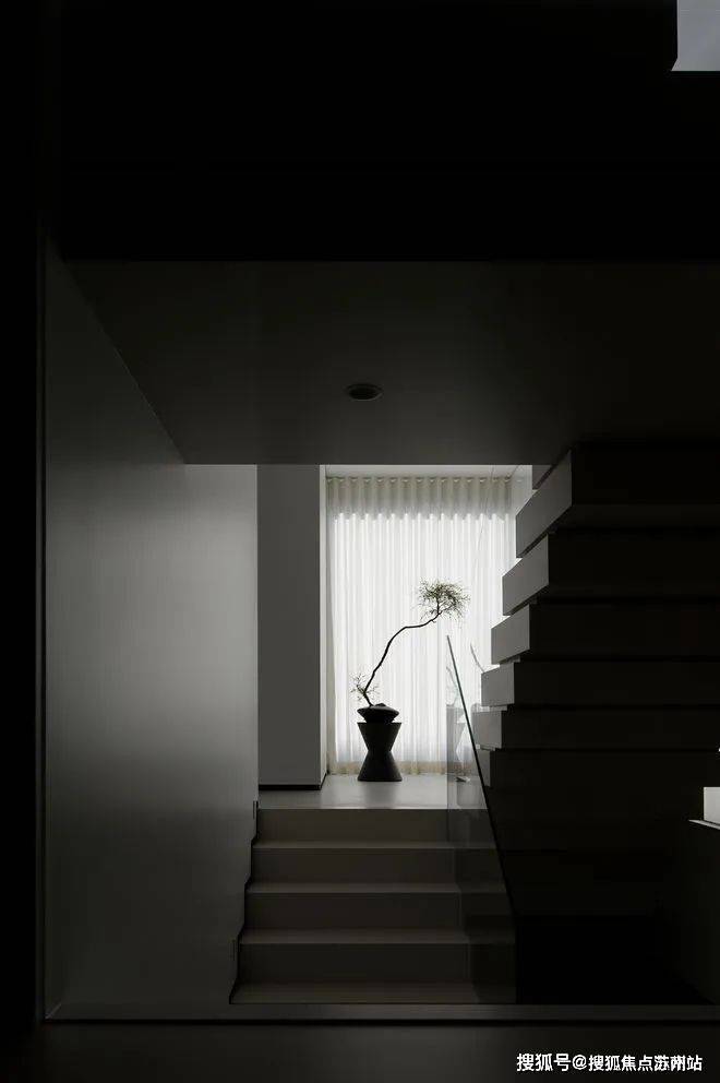 楼梯区完全被几何占据,自然光恰到好处的平衡,进一步呼应着空间的心境,衔接了生活和居所。