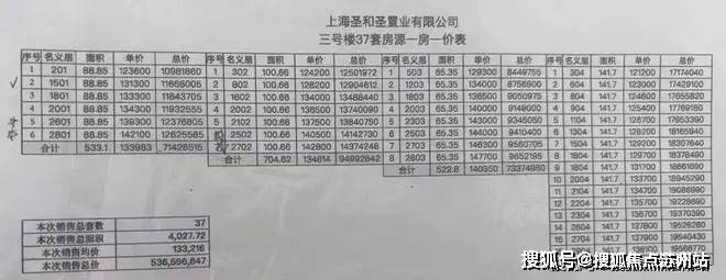 最新一房一价表: