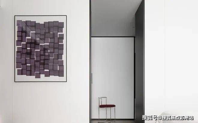 私密场域依旧保持静谧,黑白色基础上搭配了更多的色彩,例如深棕、浅紫等,艺术品的衬托深邃迷人,热络了家的氛围。
