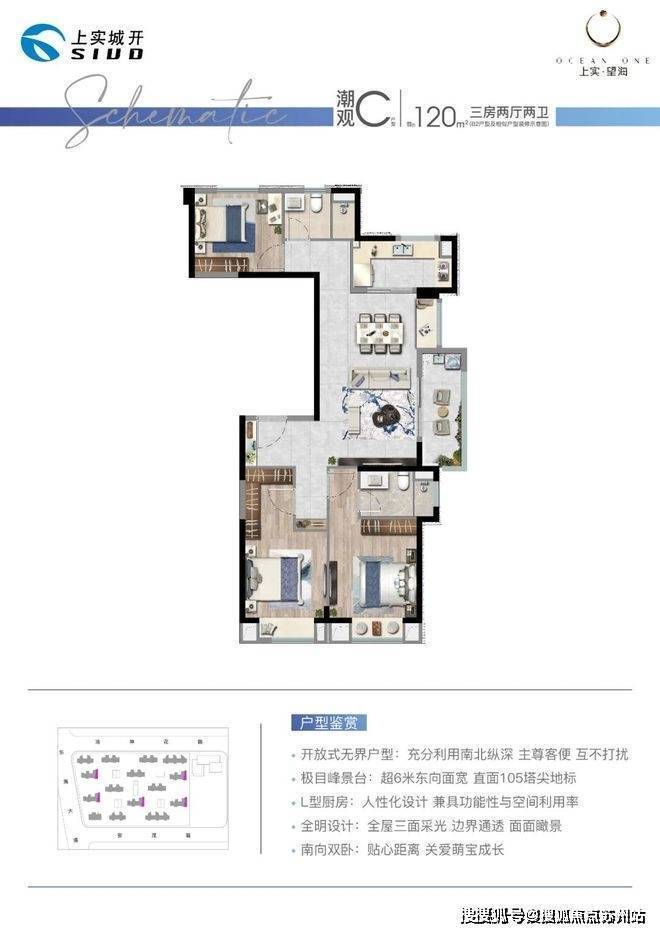 社区采用人车分流设计,在景观规划上,上实望海采用“一界一环五园十八境”景观法则,侧写九大生活场景。