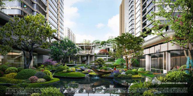 萃取精英生活底蕴,打造一座悬浮于都市之上的立体生态绿洲,「一轴·五境·七景」的叙事性布局,覆盖从归家到休闲的全场景需求。