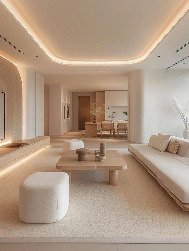 建面约103㎡的边套更是堪称神迹,将小户型的空间魔法玩到了极致。客厅到阳台的地面、天花直接拉通,甚至两侧的墙垛都已隐身,整个餐客厅面积达到约35㎡(含阳台),这可是140㎡以上大宅才有的空间感!