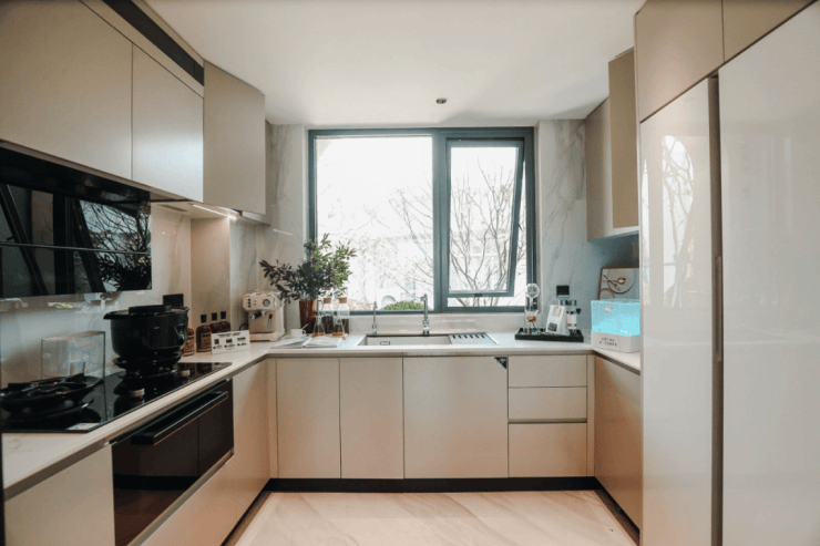 尤其是厨房,这里被打造成了更符合中国人的集成烹饪中心+集成净洗中心。