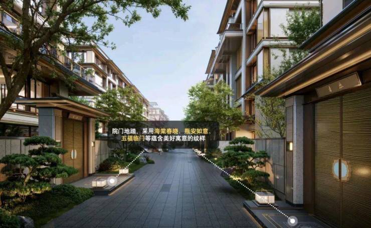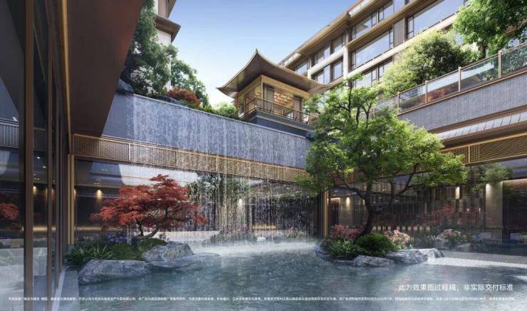 中庭的古木交柯,取自《长恨歌》" 在地愿为连理枝",象征夫妻情深、家庭和睦。下沉庭院的报松石,寓意健康长寿、基业长青。独家爆料!古城首个宋风墅「建发璟园」示范区马上公开