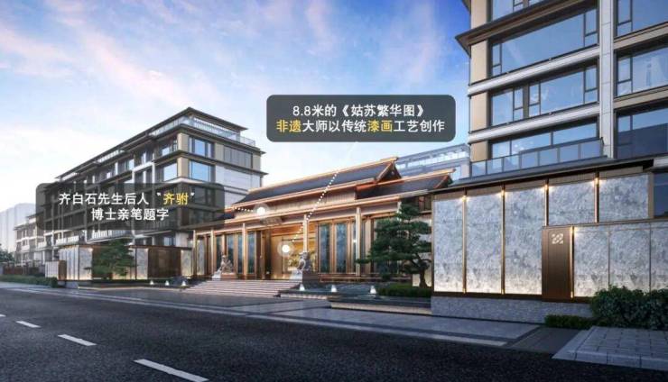 这远不止于一个装饰,它更是将家族文化的传承、个人审美志趣与东方建筑礼序相结合的艺术品。这方独一无二的门匾,将成为您家宅的独特标识,让每一次归家都充满仪式感。※恢弘大门照壁:于宅邸间珍藏国匠瑰宝,建发特邀中国工艺美术大师、国家级非遗传承人张来喜先生,以传统漆画工艺,亲手创作长达8.8米的《姑苏繁华图》,将姑苏盛景凝铸为传家级的艺术典藏。