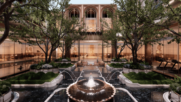 项目西临黄浦江,坐拥一线滨江资源,北接前滩滨江商务区,拥有前滩太古里等顶流商圈,南邻约240公顷的城市生态绿楔,享受“都心绿肺”体验。