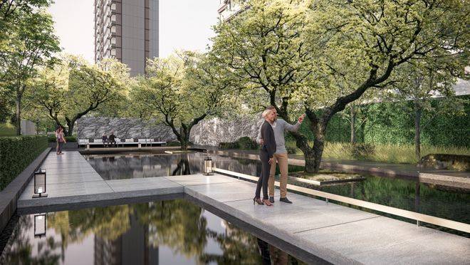 譬如仁恒·溪棠以新加坡国际视野,为整个社区打造了“一轴八园”自然景观园林。更高于园林的景观作用,为其注入了更多功能性巧思,少见的约400方儿童戏水池、约500米康养漫步道,为社区互动提供更多可能。更值得一提的是高层皆打造了功能架空层,极为人性化。