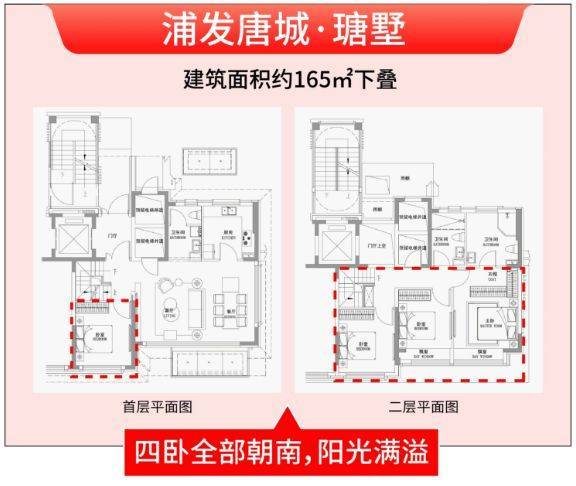 要知道,即便是目前市面上200㎡+的叠墅,就算能做到近10米面宽,也很难实现二楼所有房间都朝南,浦发唐城·瑭墅这一设计,在叠墅界首屈一指。